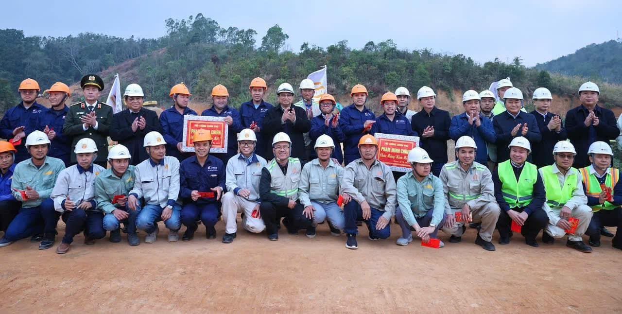 Thủ tướng Chính phủ Phạm Minh Chính trao quà cho cán bộ công nhân của dự án nhân dịp Tết Nguyên đán 2025